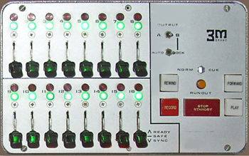 | これは3M-M23(8ch仕様まである)ですが、私の記憶では、私がアメリカ製でのプロ用2chレコーダ以外で初めて見たマシーンで、この画像のモデルは、メーターとアンプが分かれてるコンソールタイプですが、アンプとメータが一緒(アンプのセンターにメータが付いてる)のモデルでした。しかもそれはアンプ部とトランスポート部が分かれてて、ポータブルケースに入ってたと思います。クラシックのレコーディングで、アメリカからその為に日本へ2台運ばれてきて、ノイズリダクションは、ドルビーAで、1chあたり6U位あるとても大きい物でした。その時は、なぜ3Mなのか分かりませんでしたが、音は大変フラットで、クラッシックの音楽家には信頼が高かったみたいです。実際後で解かった事ですが、サーキットのパーツは全てミリタリー規格の物で、大変お金の掛かったアンプで、走行系はM56,M64やM79まで同じ作り方でした。アンペックスやスカリーの1.5倍位の値段で大変高価なマシーンでしたが、走行系をコントロールする回路に欠陥があり、最後のシリーズまで走行系は、信頼できない物でした。又、4chマシーンを2ch