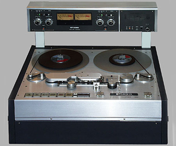 | 2chスチューダにはA80VUとA80RCタイプが存在するが、日本ではA80VUの方が評価が高いが、海外ではRCの評価も高い。 ヘッドとアンプとの配線の距離はRCの方が大変短く音の劣化が少なく、アンプもノーマルに比べ単純な為、音の抜けの良さはRCの方が良い。(A80VUはレコーディングスタジオモデル、A80RCは放送局モデル) A80VUの方が高級観は良い但し、ヘッドルームはA80VUの方が大きい。右の画像はDINタイプのハブが付いているA80RCです。 マークレビンソンの作ったテープレコーダML-5もA80RCをベースに作られていて。昔、L.A.のチックコリアのスタジオにML-5は2台あり、実際に使ってみましたがスチューダの音でなく、まさに馬力のあるアメリカサウンドで、またそれは日本輸入されたLNP-2パネル付きのモデルではなく、メーターレスタイプでマークレビンソンのロゴパネルが付いてなかったら外からはRCと見分けがつきませんでした。ML-5のハーフインチモデルが存在してたら購入してたかもしれません。 | ![]() ![]() |