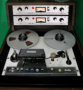 | これはAria Discrete Class-A ElectronicsのA80改1インチ2chマスターレコーダとATR100ベースのマスターレコーダで、トランスポート以外は0から設計してる物で、スーパーアナログの凄さが解るマシンです。アンプがほとんど同じ為、音には殆んど差がでません。メカの信頼性ではスチューダですが、ピンチローラレスのアンペックスどちらに軍配が上がるかは判らない。A80は、12インチリールまで、ATRは14インチまで載るので長時間の使用ができる。 | ![]() |