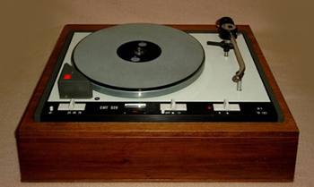 | これは、EMT930stにガラスのターンテーブルと139を積んだ管球式モデルですが、最後に生産されたモデルも、まともに動いてるのは、最近では少ない。これは、モーターの回転を正常にする為の進相コンデンサーが、3年位で駄目になる為、交換が必要なのと、アイドラのゴムが使わないでいると、解けてしまう為です。その為大変維持費がかかります。プロ用ですので当り前ですけど。アイドラのゴムは、アメリカから溶けない物もでてます。又、930-900ショックアブソーバーは、一般家庭で使う場合は、必需品です。昔はオーダーで、メタリックグレーのボディーから色の変更もできました。 私もメタリックグレーの球の930st(画像)とブラックのトランジスターの930stを使ってました。黒ボディーの物は今、誰が使用してるかは判りませんが、220V仕様の50hzでした。 | ![]() |