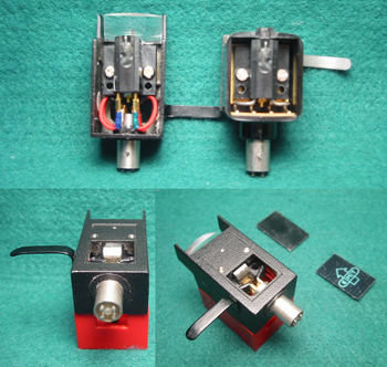 | これはEMT以外のターンテーブルで、TSD−15用のシェルを通常のAシェルと同じ端子に変えた物でAシェルと同サイズです。Aシェルのオリジナルの音よりSPUの低域が良くなりました。昔苦労して作りましたが、最近EMTからAシェルと同じタイプの端子が付いてる物が売られてました。 | ![]() |